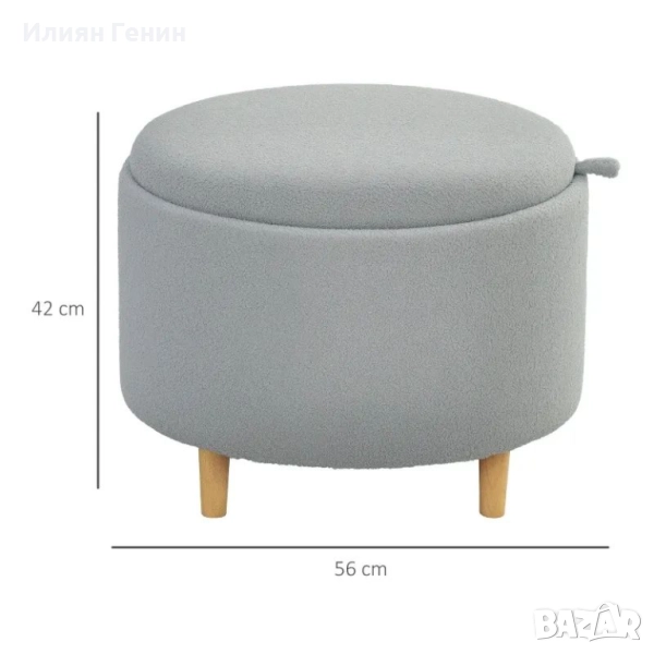 Табуретка HOMCOM, Скрито място за съхранение, Обръщащ се капак, 56 см x 56 см x 42 см, Сива - 140.00лв.