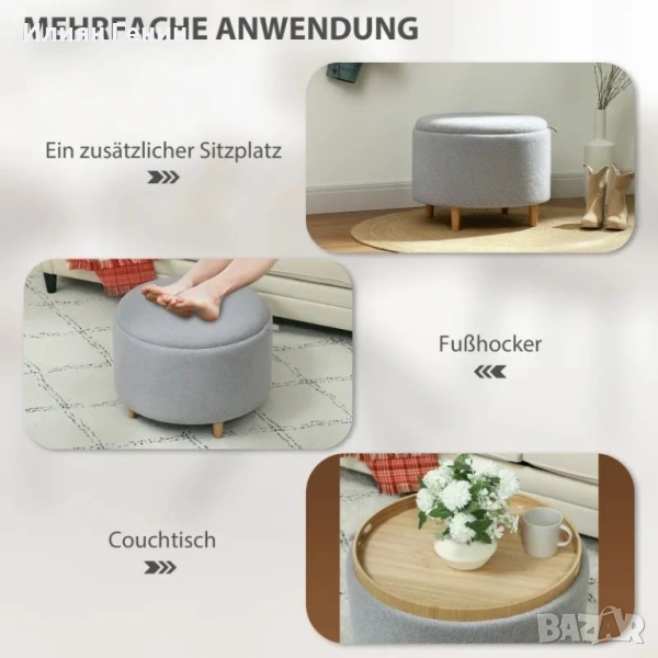 ✔ Многофункционален мебелен елемент, който може да се използва като масичка за кафе, поставка за обувки, поставка за крака или табуретка