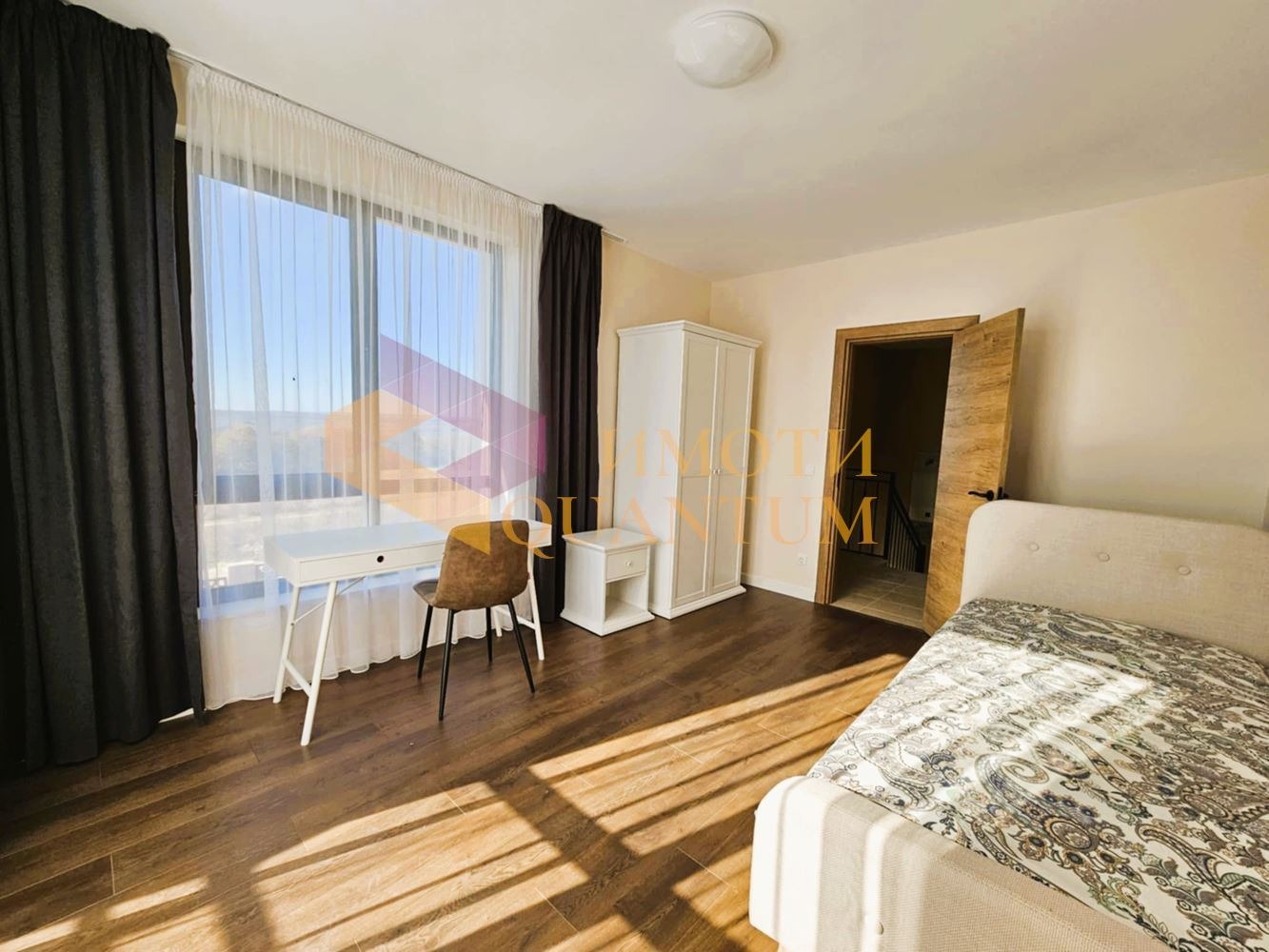 На втория етаж са разположени спалня с дрешник и баня с тоалетна /26 кв.м/, спалня /15 кв.м/, тераса обща за двете спални, баня с тоалетна и стълбищна площадка с офис корнер.