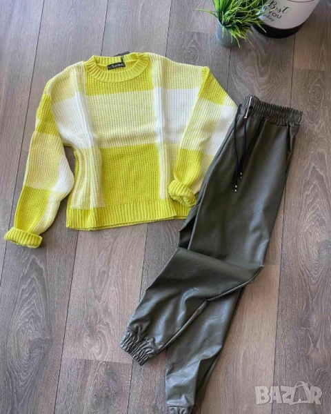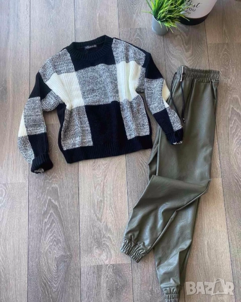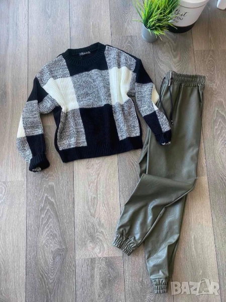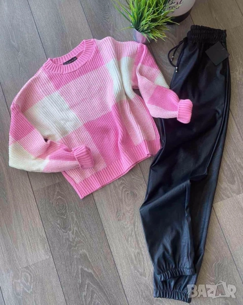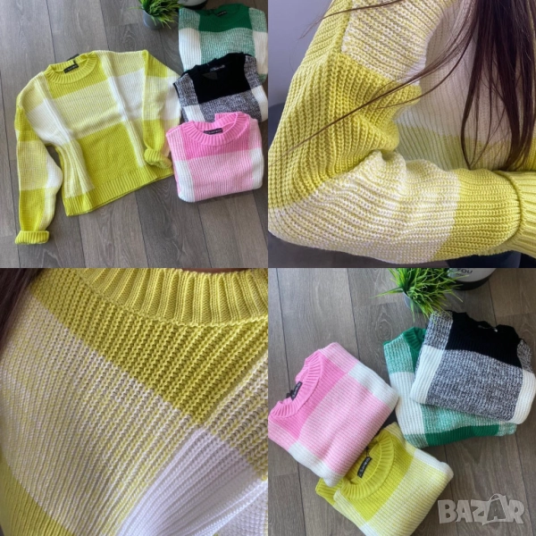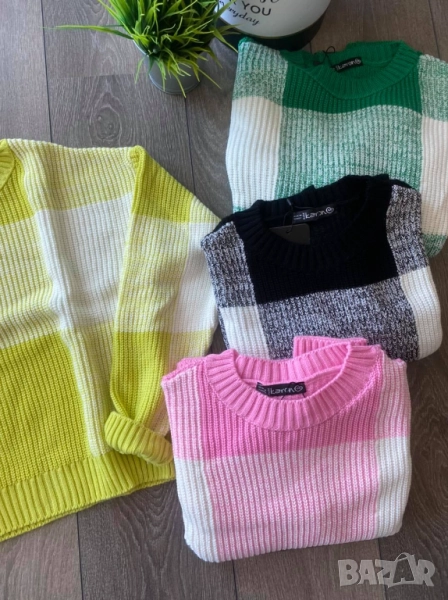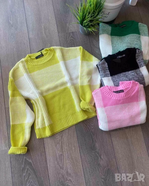 Пуловер с квадрати в черен,зелен,жълт и розов цвят → Обява 52415888