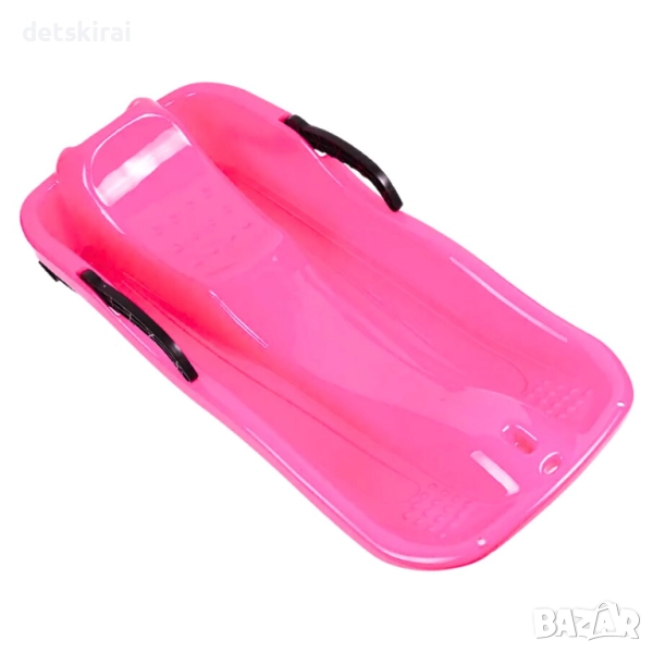 Осигурете на детето си удоволствие и безопасност по време на зимните забавления в снега! Тези шейни са идеалното решение за малчуганите, които обичат да се спускат надолу по хълма. Здравата конструкция, ергономичните дръжки и мощните спирачки правят спусканията не само вълнуващи, но и безопасни. Предлагат се в два цвята: розов и син, с черни дръжки.