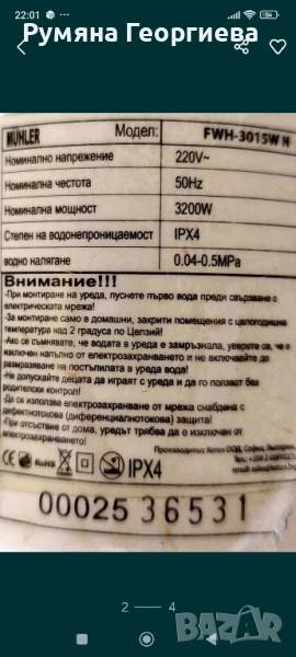 проточен бойлер, смесилелна батерия за топла вода → Обява 52415982