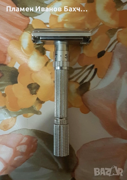 Изцяло месингова самобръсначка, с никелирано покритие на главата (за по-добра хлъзгавост).