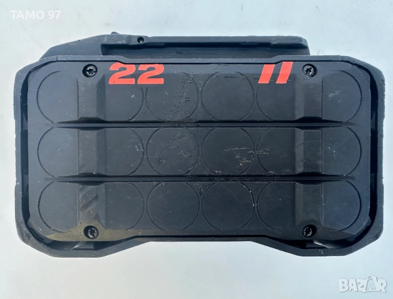 Батерията е 22V 12.0Ah с индикатор в много-добро визуално състояние, също така работи и държи заряд отлично. Оригинално полско произодство внос от Франция. Пращаме с опция преглед и тест с куриерска фирма еконт може и лично предаване за гр. Шумен.Магазинската цена е: 893лв БЕЗ ДДС (С ДДСТО Е 1 071лв.)