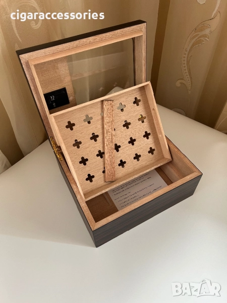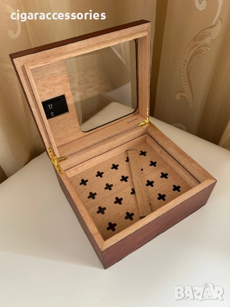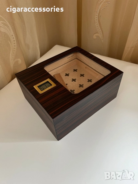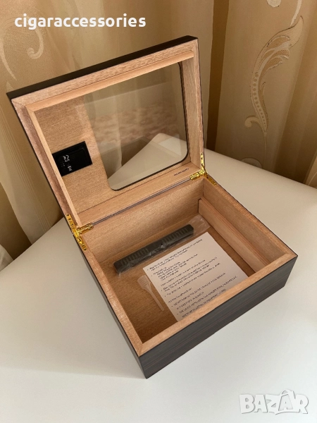 Елегантен модел с вграден хигрометър и стъклен прозорец в капака, който позволява да наблюдавате пурите без отваряне.