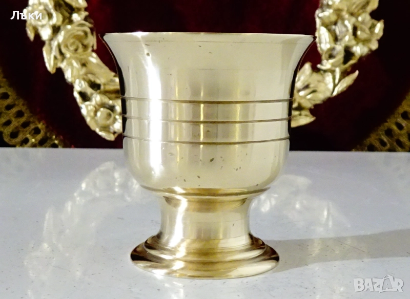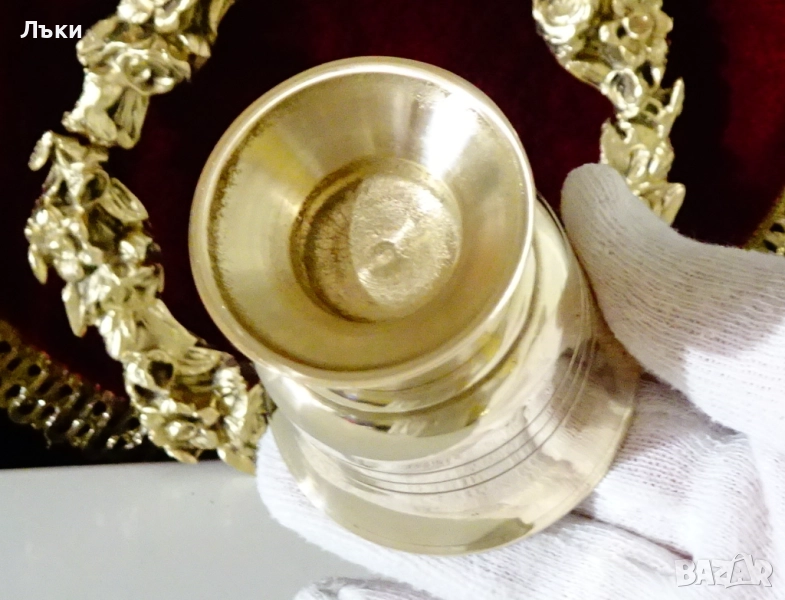 блясък.Релефно декорирана,масивна,звънка.Височина 6 см.,диаметър 5.5 см.,тегло