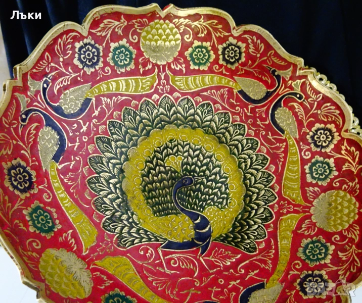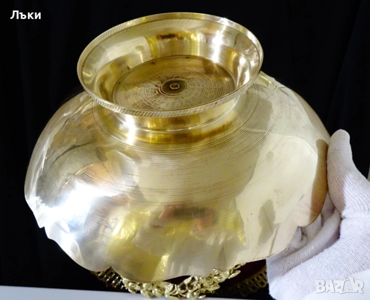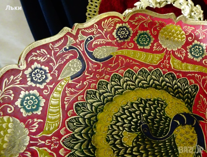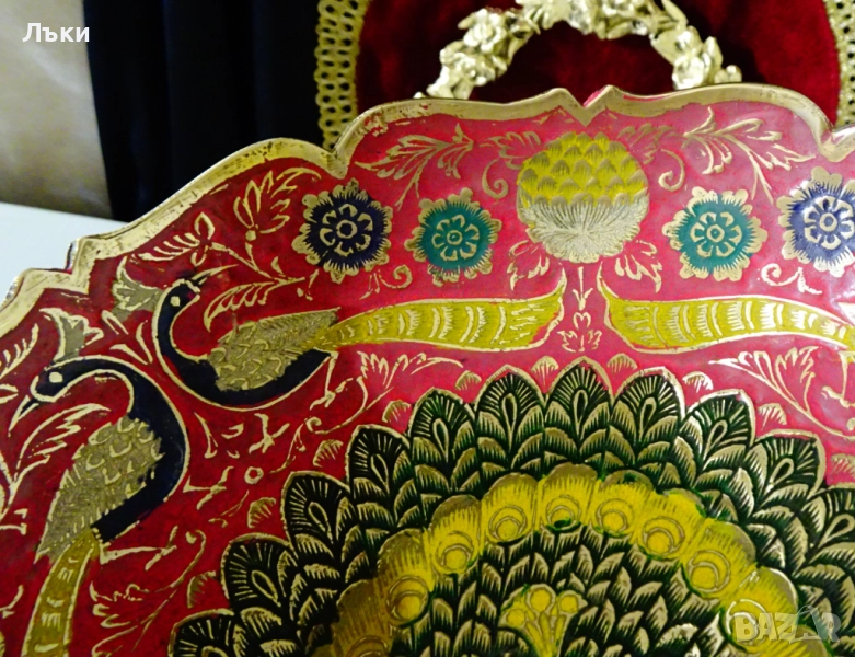 бронз.Декорирана с прецизно изваяни релефни пауни,цветя и орнаменти.Фантастична