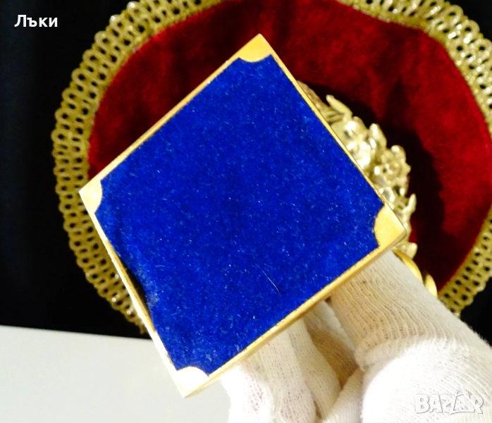 синьо кадифе.Височина 15.5 см.,диагонал на основата 9 см.,тегло на всеки 410