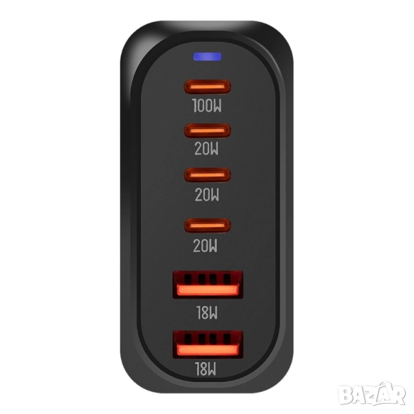 • Технология: GaN (Gallium Nitride) – по-ефективна и компактна от традиционните зарядни.