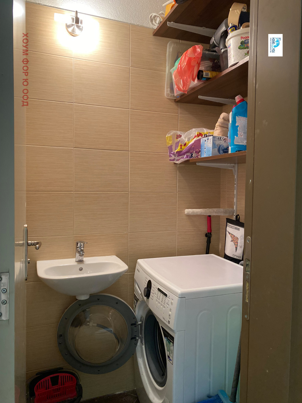 Голям коридор с гостна тоалетна с мивка, която собственика е преобразувал в мокро помешение.