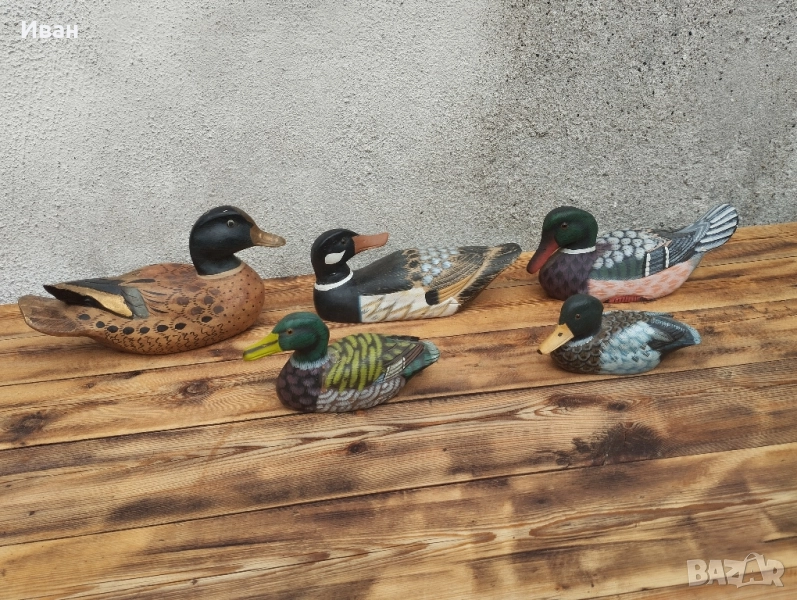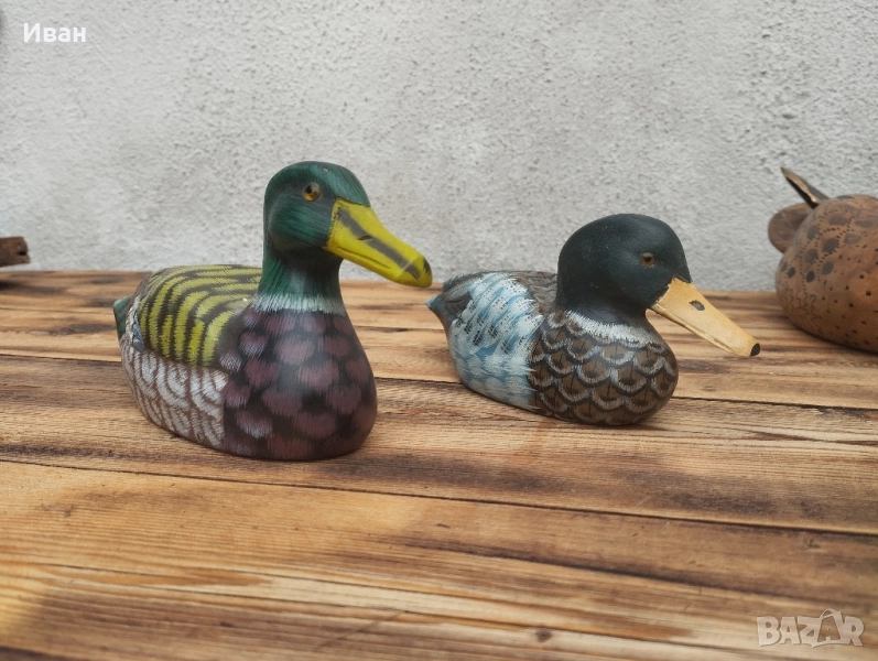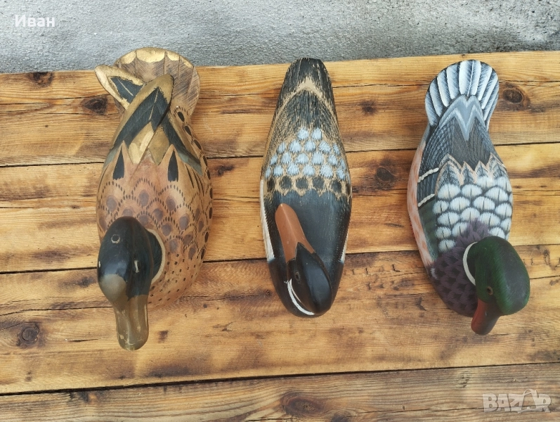 Цена на горните 3 -35 лв за брой Цена на долните две - 20 лв за брой Красиви ръчно изработени и боядисани дървени патици, подходящи за декорация на дома или градината. Всяка патица е уникална по дизайн и цветова гама, което ги прави прекрасен акцент към вашия интериор.