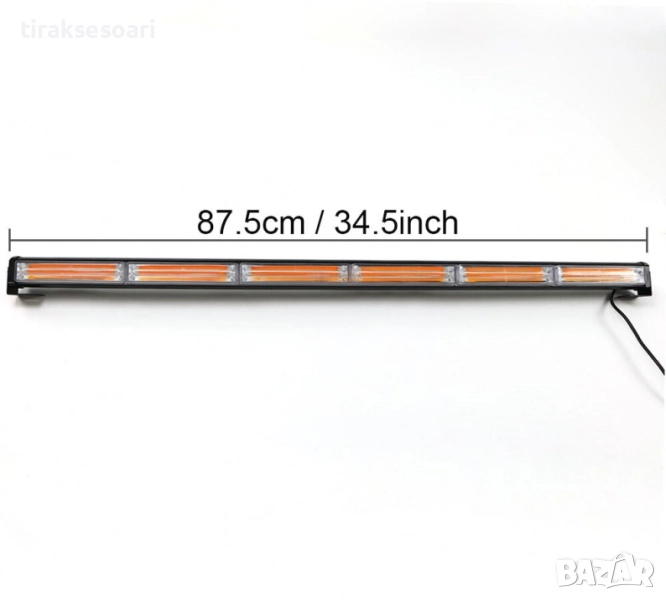 led аварийна лампа 90см, блиц маяк платформа, пътна помощ led бар, оранжев маяк 12v 24v, аварийна сигнална лампа, led strobe bar, 9 режима маяк, led лампа камион