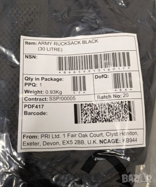 НОВ Оригинал Английска Военна РАНИЦА 30+5 литра Войнишки Сак 55x40x20 см Полева Чанта Кордура БАРТЕР