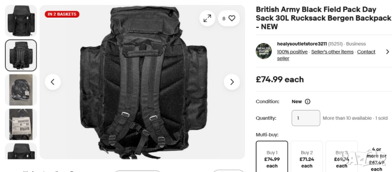 Налични и разни военни модели раници сакове чанти, спални чували, походен дюшек, бивак сак, компресионен сак чанта торба, палатка, камуфлажни фланелки якета панталони униформи шапки, колани, спасителни жилетки, компаси, бинокъл телескоп, прибори за нощно виждане, комплект за оцеляване и др.военно оборудване (вижте обяви).