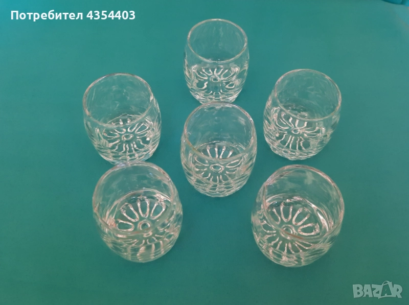 Продавам комплект от 6 ефектни стъклени чашки от миналия век, в отлично състояние, с вместимост около 40–50 мл.