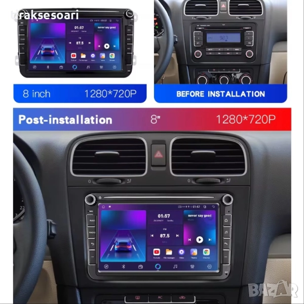Мултимедия 8” за VW Golf 5/6, Touran, Passat, Tiguan – 4GB RAM, 64GB ROM, CarPlay, Android Auto, Bluetooth, WiFi + ПОДАРЪК камера с 10 светодиода