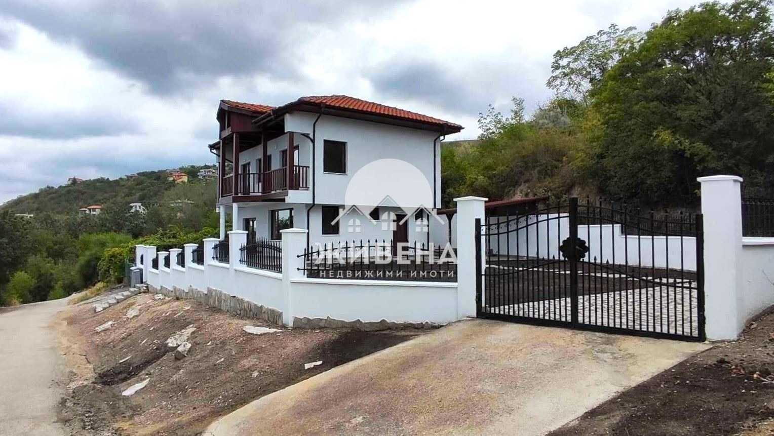 Агенция Живена предлага за продажба нова къща на два етажа с РЗП: 160 кв.м, построена в оградено дворно място двор с площ - 470 кв.м. Намира се във вилна зона Момчил между гр. Балчик (3 км) и к.к. Албена (6 км). Разпределение: ПЪРВИ етаж - просторна дневна с вградена кухня, камина и климатик, мокро/перално помещение, килер, малко преддверие и тоалетна; ВТОРИ етаж - обширен коридор, три спални, оборудвана баня с тоалетна. Една от спалните има собствена баня с вана и тоалетна. Трите спални имат излаз към тераса с прекрасен изглед към морето. Къщата разполага с инсталирана алармена система, а поддържане на озеленяването в двора се осъществява чрез поливна система с контрол през мобилно приложение. В двора до къщата има веранда с навес и обособено паркомясто. Агенция Живена извършва необходимите проверки на имота, който сте избрали, организира всички етапи на сделката до нейното финализиране. Оказваме съдействие за отпускане на банков кредит. Оферта 7227