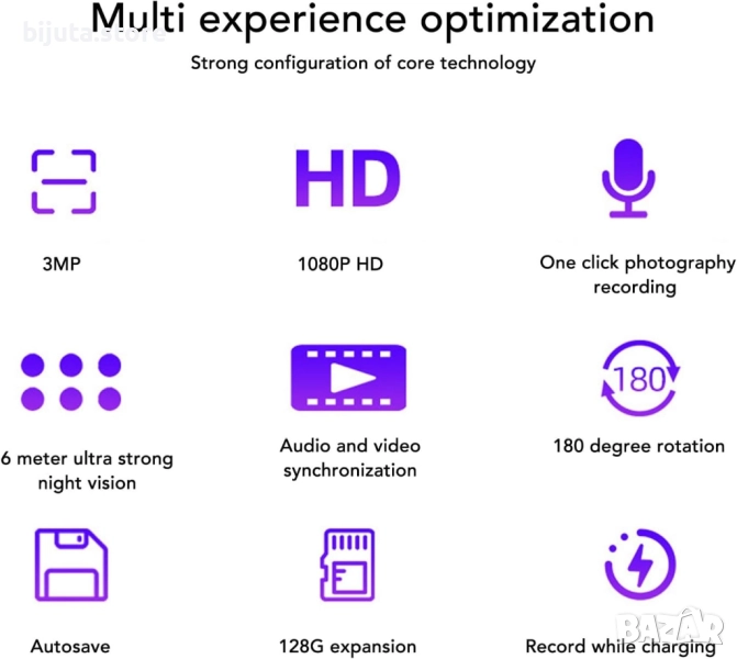 ЦИКЛИЧЕН ЗАПИС: Когато картата с памет е пълна, новозаписаното видео може автоматично да презапише оригиналното видео, което може да спести място в паметта и да подобри използването. Телесната камера поддържа карти с памет до 128GB (не са включени).