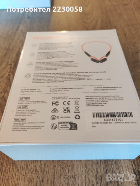 Безжични спортни слушалки - TrueFree F2 - Bluetooth → Обява 52418687