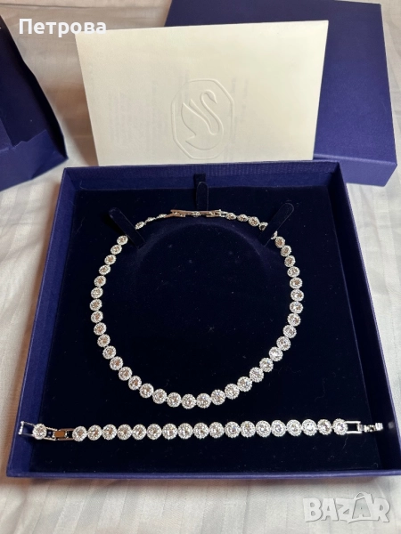 Комплект Чисто нови колие и гривна на Swarovski без забележки със сертификат касова бележка и кутията си. Възможно е и лично предаване. Може и по отделно.