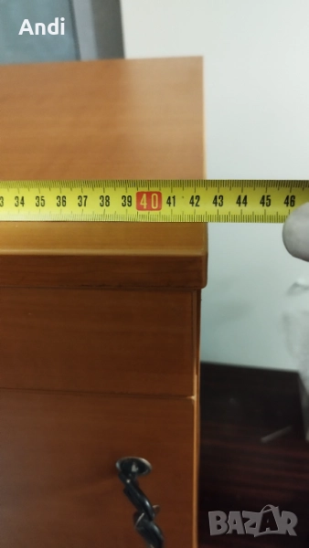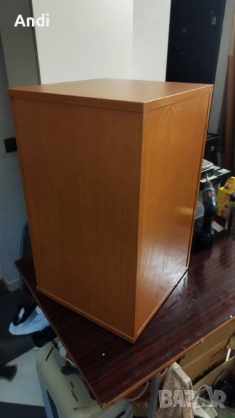 Продавам Шкафче за бюро - контейнер със заключване на двете чекмеджета ширина 42,5 см /дълбочина 40,5см / височина 68,5см. Шкафчето е много запазено като ново с дебел плот, механизмите работят без проблеми както и ключалката. Цвета е черкеникаво кафяв - череша. няма колеата а нивелиращи се крачета .