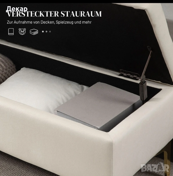 Тази елегантна пейка HOMCOM не само предлага допълнително място за съхранение, но и е стилен акцент за вашия дом. Тя допълва интериорния дизайн и създава допълнителни места за сядане за вас или вашите гости. Скрита под седалката, пейката предлага място за предмети, които вече имат място в стаята, като например одеяла или кърпи. Добавете личен щрих към дома си с HOMCOM.