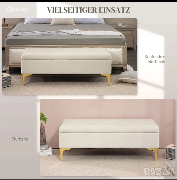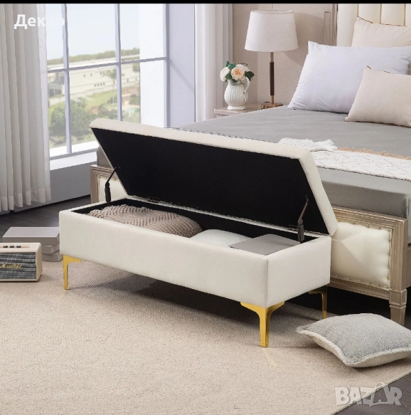 Може да се използва като пейка в подножието на леглото, перваза на прозореца или пейка на входа