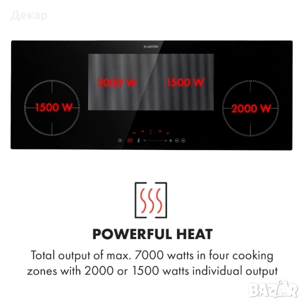 Мощна топлина: цялостна мощност 7000 W в четири зони за готвене с единични мощности 2000 W и 1500 W