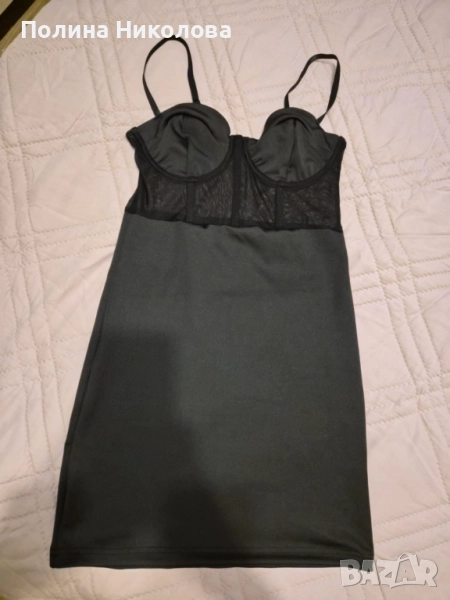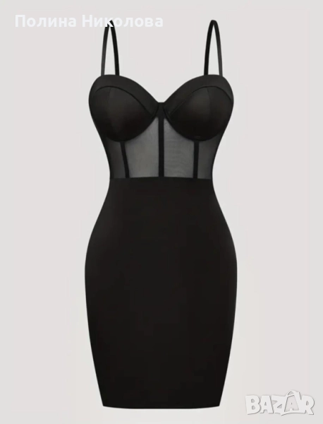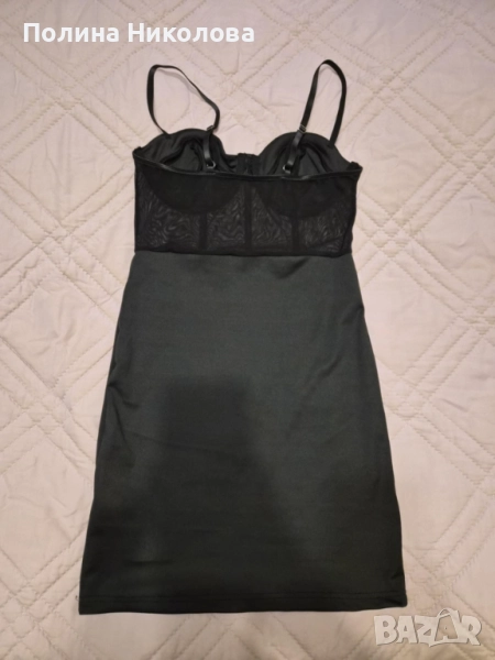 Продавам чисто нова черна рокля, не е носена нито веднъж. Без цип, тънки презрамки, има банели на деколтето, дължина - над коляното.