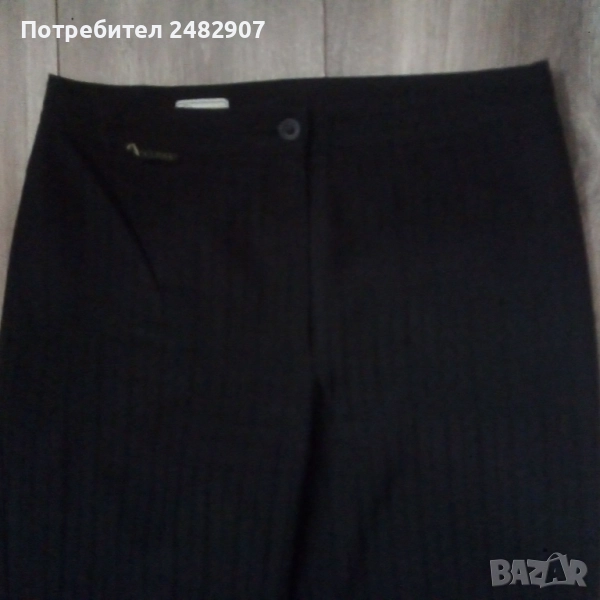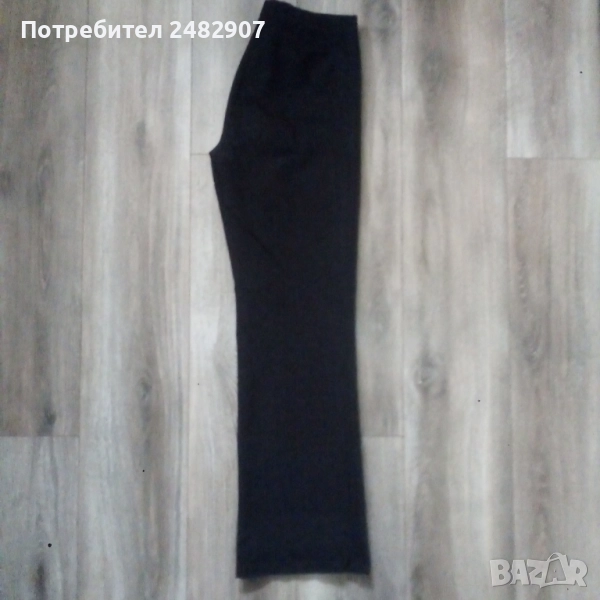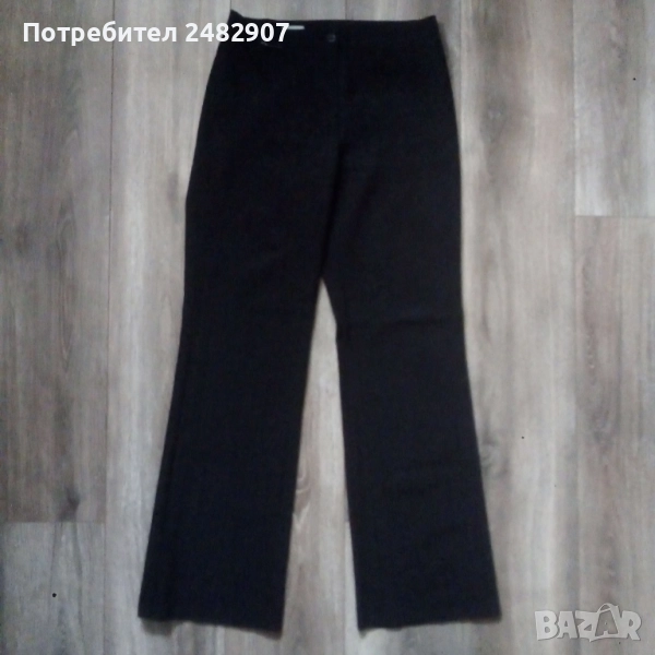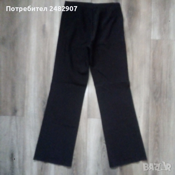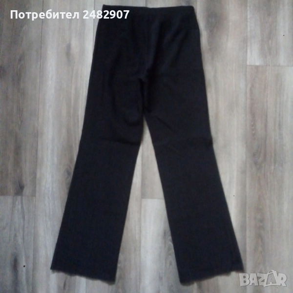 Черен тънък дамски панталон, размер 42. Съдържа 90 % полиестер, 7 % вискоза и 3 % спандекс. Ширина в талията - 36 см, дължина от талията до чатала - 25 см, дължина от талията до долу - 100 см, ширина на крачола в долната част - 24 см. Запазен, с нормални следи от използване.