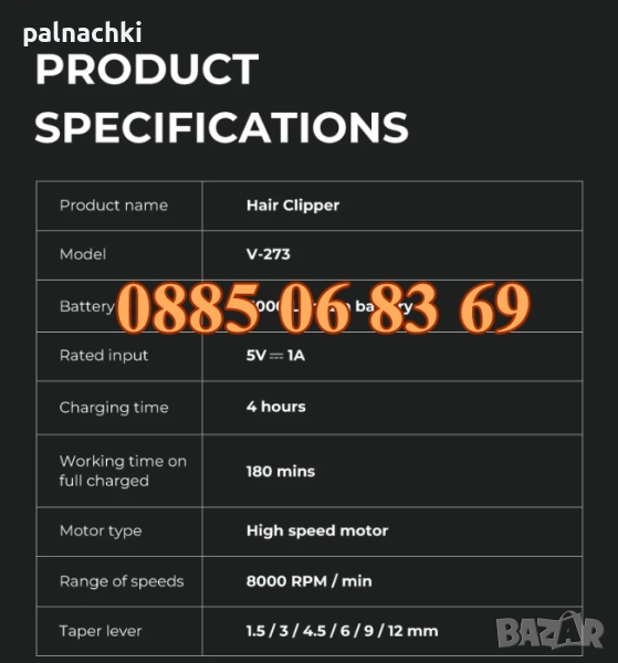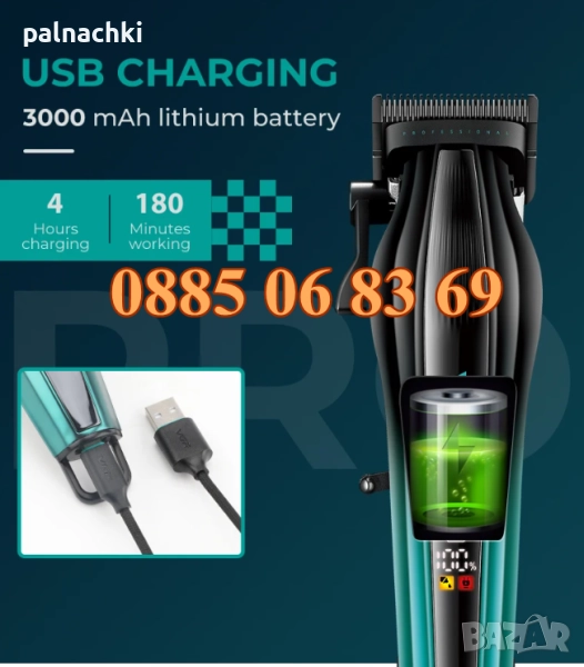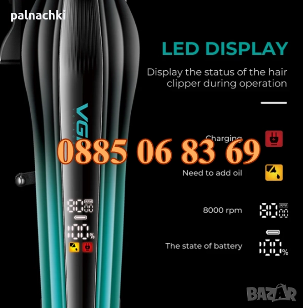 Безжична машинка за подстригване VGR 273, машинка за коса, тример за подстригване