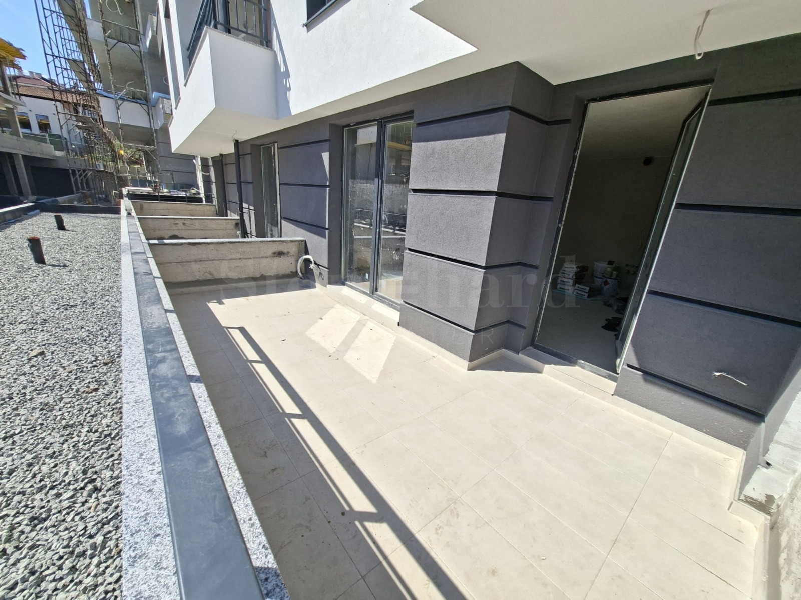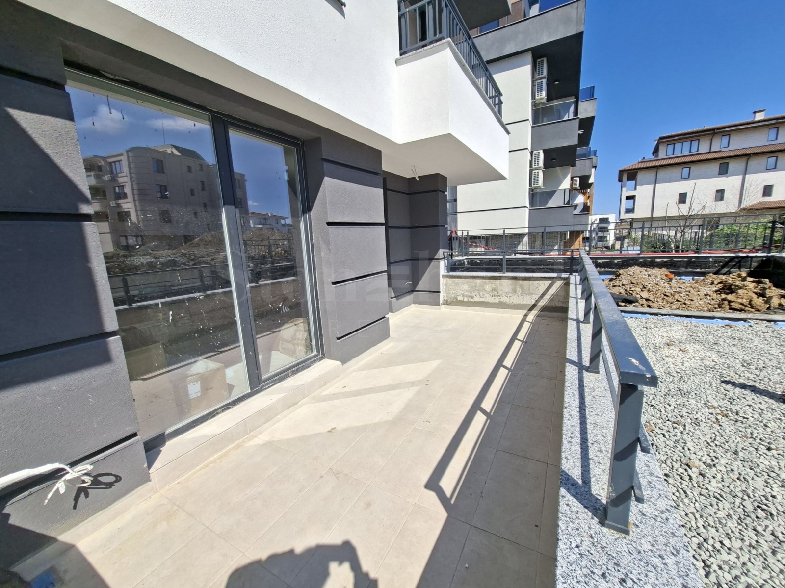 тераси: гранитогрес за външни условия. Всички покривни тераси ще са с XPS и хидроизолация. Алуминиев ажурен парапет;
