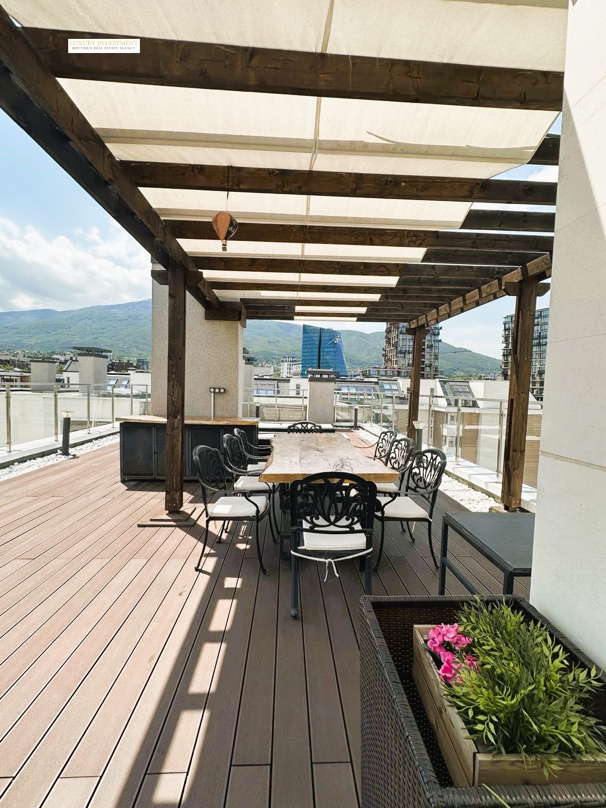 Luxury Investment представя Апартамент 16 - стилен пентхаус, който съчетава функционалност, простор и впечатляваща тераса панорамни гледки към Витоша, разположен в престижния затворен комплекс Flora Garden, на комуникативно място с лесен достъп до центъра на София.