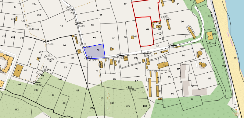 УПИ: 53045.503.70, площ: 1767 кв.м., НТП: Незастроен имот за курортно-рекреационен обект