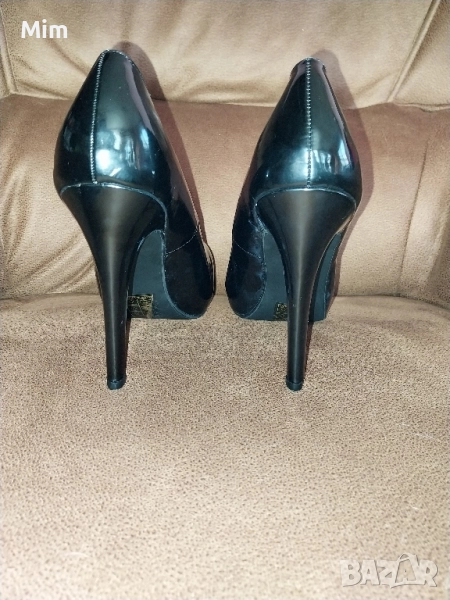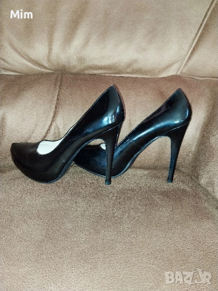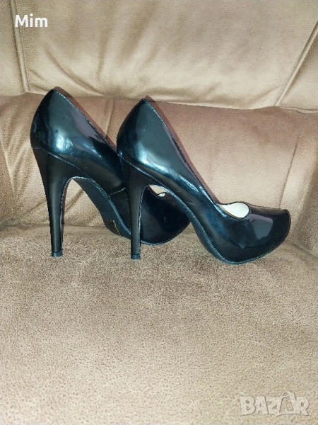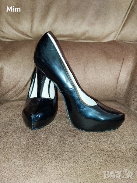 1- Черни лачени обувки с ток 12 см ,стелка25.5 ,платформа.ма вътрешна 2 см