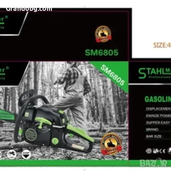 Бензинова резачка STAHLMAYER SM6805 разполага с двутактов двигател с въздушно охлаждане и мощност 4,5KW .