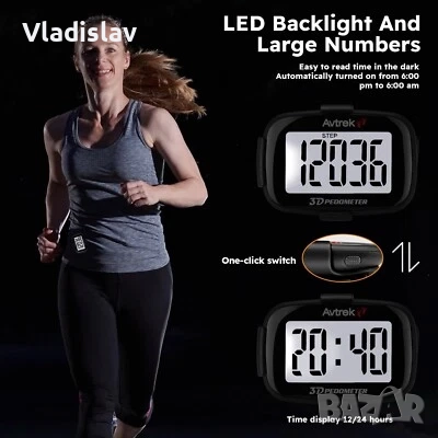 Удобен за потребителя джобен крачкомер с ярка LED подсветка - не е необходим смартфон