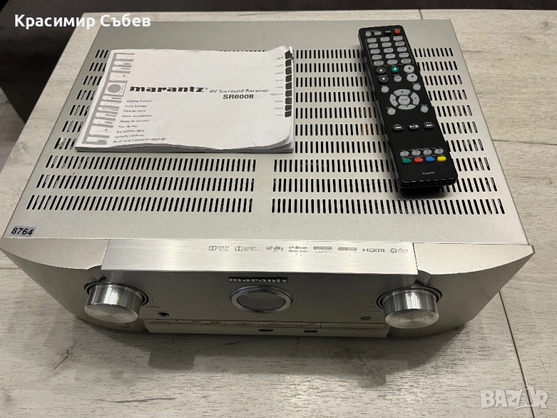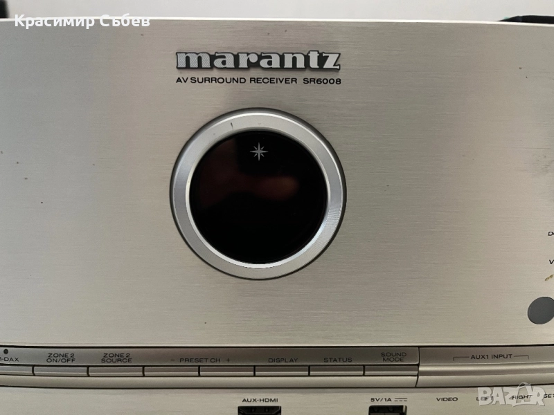 Marantz SR6008. Ресивъра е в много добро състояние, налично към него дистанционно, книжка и захранващ кабел. Много добър и плътен звук. В стерео режим се справя изключително добре. Повече за модела има в интернет, но има всичко нужно за добро кино изживяване. Намира се в Димитровград, може да се види и тества по всяко време. По-надолу има и клип как свири. Ето и повече характеристики за модела: Audio specifications