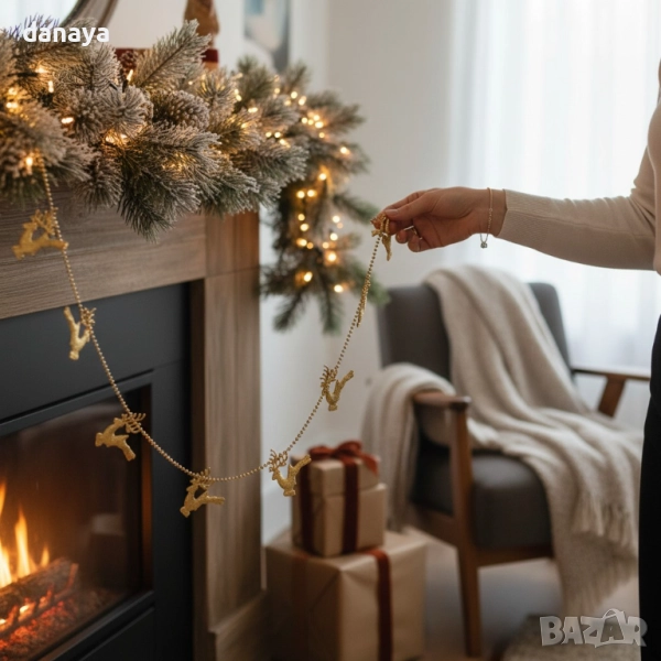 Добавете елегантен празничен акцент към дома с този декоративен коледен гирлянд с еленчета. Дълъг 2.7 метра, той е подходящ за украса на елха, камина, рафтове, прозорци или коледни аранжировки. Верижката е лека, гъвкава и лесна за поставяне, което позволява да оформите декорацията според пространството и желания ефект.