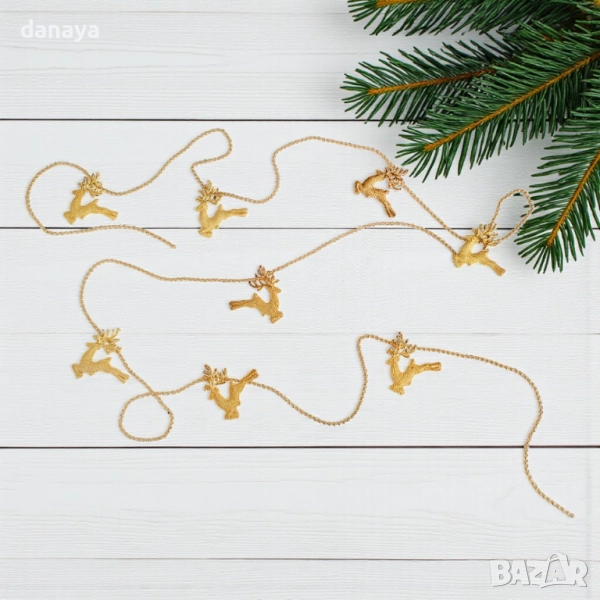 6167 Коледен гирлянд с еленчета декоративен гердан за елха и декорация, 270 см