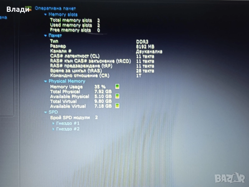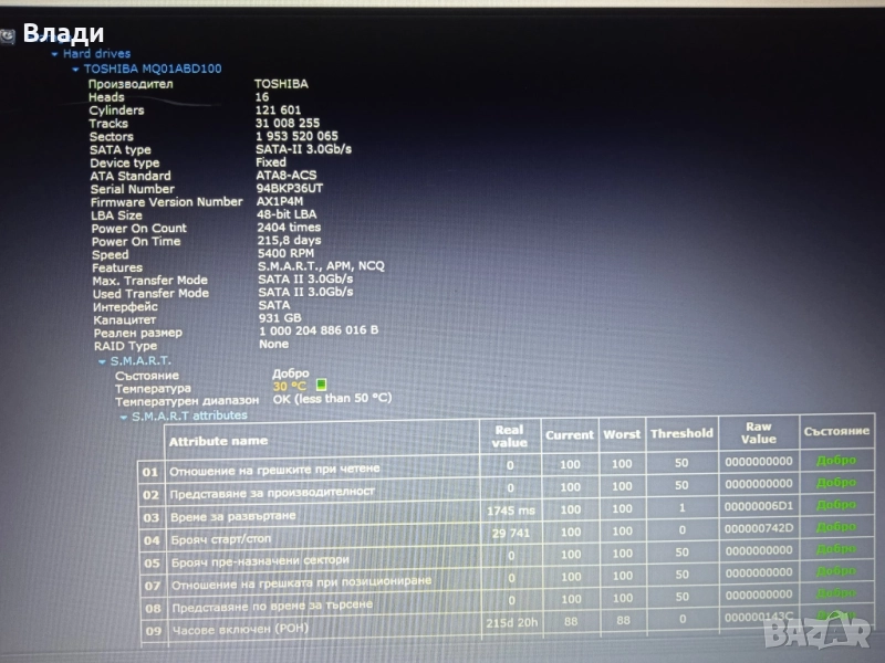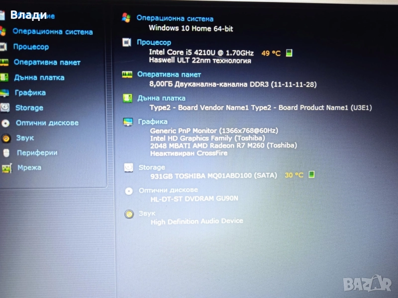 Инсталиран с Windows 64 bit,HDD Sentinel,Speccy и Aida 64,за да се тества преди да се плати.