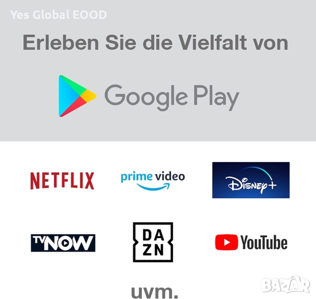 Приложения: Google Play Store, YouTube, Netflix, Prime Video и др.