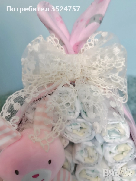 Продавам готов подарък за бебе "Вързопче Нежност" за момиче, но може да бъде изработено със синя пелена за момче!