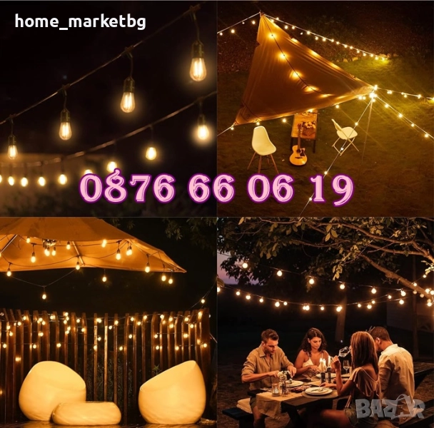 Декоративни лед лампи 20 бр. на верига/гирлянд за градина, тереса 10 метра