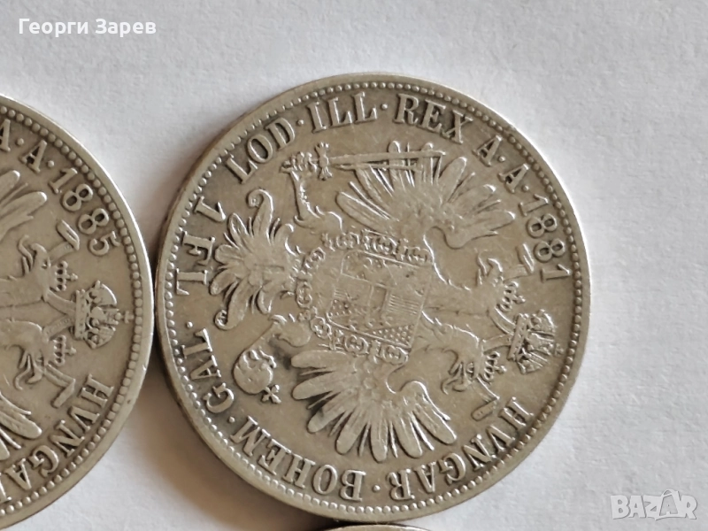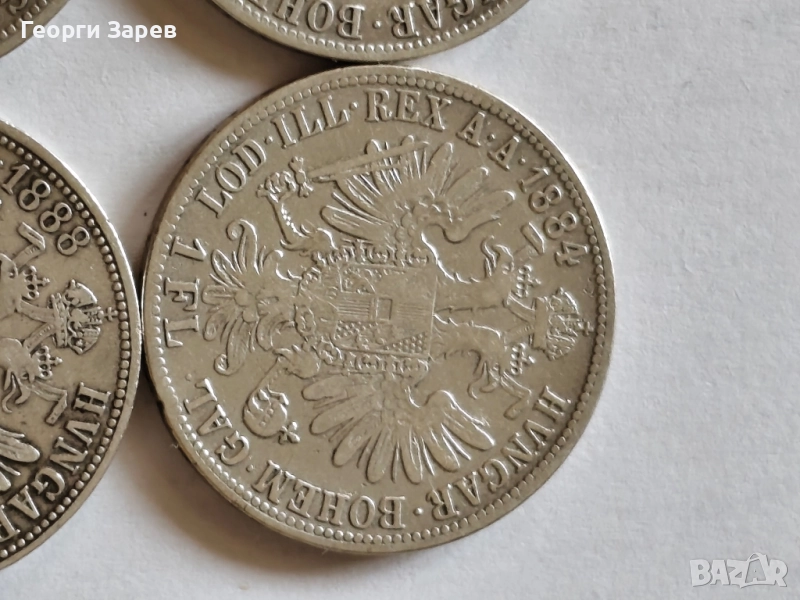 Австрийска империя, император Франц Йозеф 1 Флорин 1881,1884,1885 и 1888 год, сребро, тегло 12.34 гр, проба 900/1000 Цена 32 евро ( борсовата цена на среброто) за брой Само лично предаване в София Телефон за връзка 0878 30 50 21
