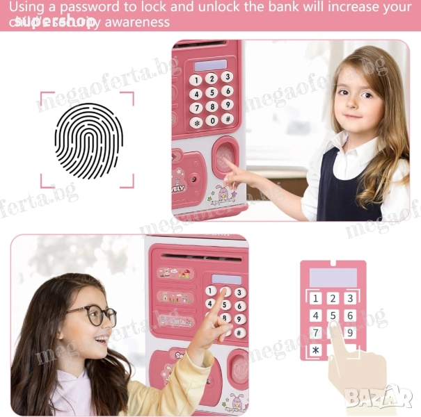 ПРОМО! Детска Касичка Сейф за Банкноти и Монети с Парола и Пръстов Отпечатък