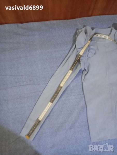 Светлосиня дамска блуза с дълъг ръкав. Подробни размери са показани на снимките. Цена: 2 EUR.