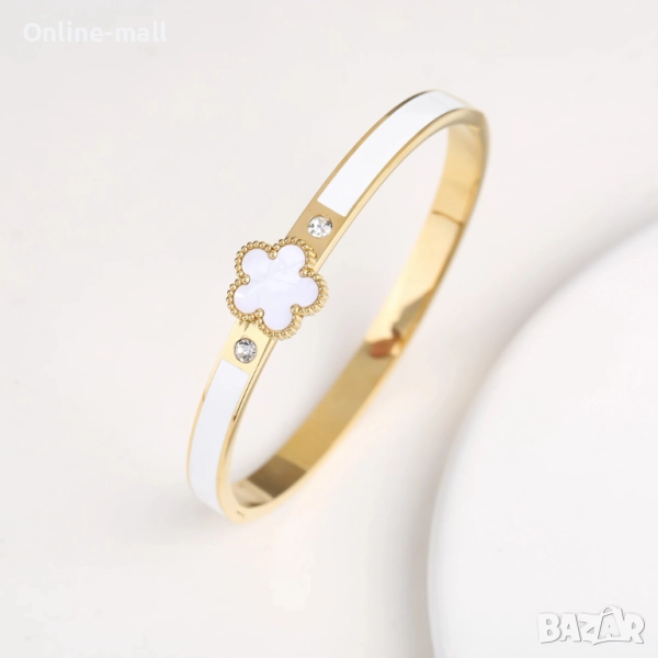 Елегантна, модерна и винаги стилна – тази дамска гривна с детелина и кристали в стил Van Cleef е перфектният акцент за всяка визия. Символът на четирилистната детелина носи късмет и женственост, а златният обков и блестящите кристали добавят изтънчен лукс.