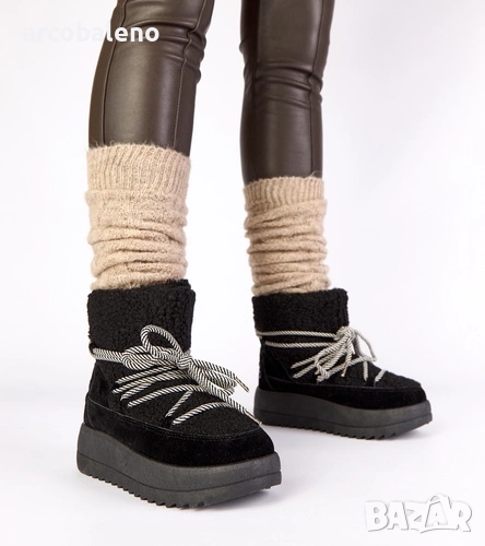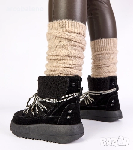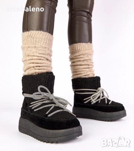 Дамски черни снежни боти с връзки и подплата от кожа, Sienna