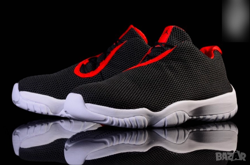 Air Jordan Future Low, МИНИМАЛНО ДИЗАЙНИРАНИ ЗА МОДЕРЕН СТИЛ ИЗВЪН КОРТ. Мъжките обувки Air Jordan Future Low се открояват при слаба светлина с отразяващо покритие върху дишащата си мрежеста горна част. Междинната подметка от компресионно формована пяна осигурява лек комфорт под краката, а средната част на стъпалото поддържа стабилност. Дишащата мрежеста горна част има отразяващо горно покритие. Междинна подметка от компресионно формована пяна за лек комфорт. Капсулираната система Air-Sole в петата предлага леко омекотяване. Асиметрична система за връзване за заключване и поддръжка. Кръглата гумена шарка на подметката предлага издръжливо сцепление.